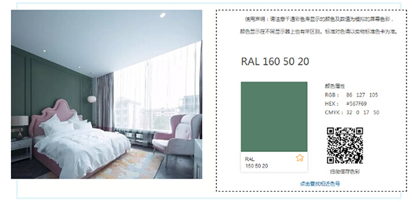 涂料美丽的颜色会通过色相、明度、纯度这三个特征来体现,下图中案例使用墙面涂料为:Mylands Marble Matt Emulsion®,ral色彩色号为:RAL 075 92 05;